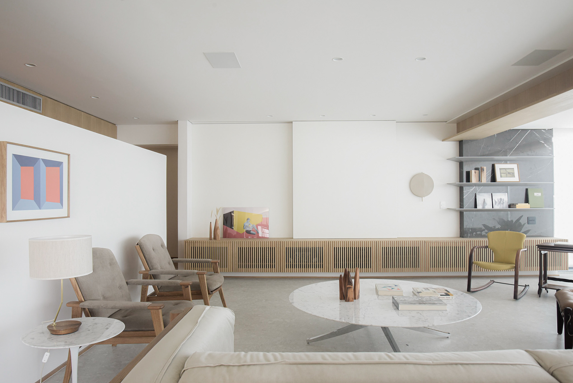 Project: 2022 _ Implementation: 2023 _ São Paulo, SP _ Brasil _ Construction: 153 m² Project Team: Andre Weigand; Olegário Vasconcelos; _ Construction Deive Menon e Fábio Magalhães; Woodwork: Marcenaria Taniguchi; Furniture: Arqlinea, Dpot, Bernardo Figueiredo, Fernando Prado, Rejane Carvalho Leite, Sergio Rodrigues; Lightening: Cia de Iluminação; Tiles: Lurca; Art Advisory: WG GALERIA; Photography: Andre Weigand;