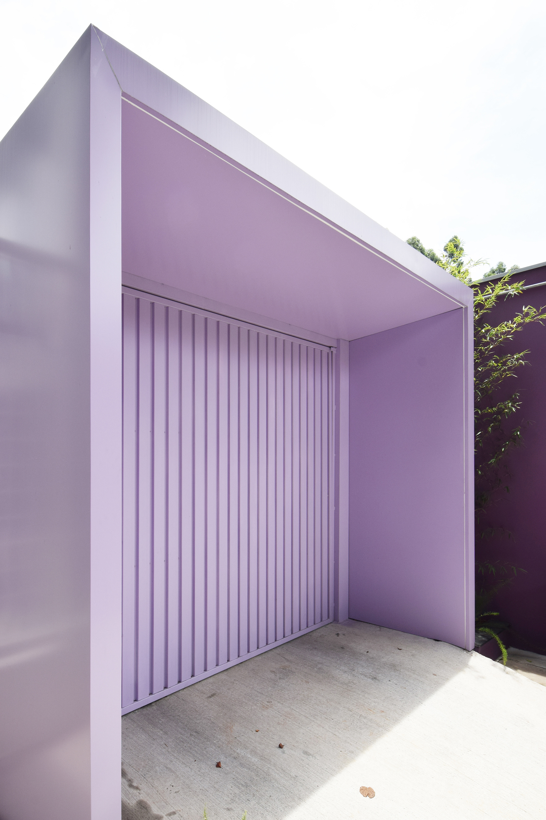 O Blink Studio é um projeto urbano. Tanto no seu uso como em concepção arquitetônica. Por essa questão e por prazos de execução, definimos a troca do revestimento de fachada para cimento queimado, e trabalhamos com cores marcantes inspiradas na marca do Blink em alguns elementos complementares aos edifícios. Os muros permeiam a construção monocromática com cores vibrantes, como o roxo e o laranja. E o principal, o pórtico de entrada, meu item favorito do projeto, em um lilás suave que se destaca por ser um elemento solto dos demais, que serve como elemento de transição para as pessoas que utilizarão os Estúdios, marcando a saída do espaço público para o privado. É importante isso, as pessoas precisam sentir a segurança e conforto para realizar o trabalho que dura horas, por isso digo ser um espaço privado, mesmo que por poucos dias ou horas, apesar de ser para uso de público variado. Destaco outros itens do projeto como a grande caixilharia do bloco administrativo, que diferente do bloco dos estúdios que precisa ser fechado, abrigado e sigiloso, deve ser aberto, estar inserido na cidade, com boa vista e iluminação natural farta, que é tanto agradável e confortável ao bem estar quanto ecológica, pois diminui a necessidade de iluminação artificial. Outro item que destaco são os camarins, super equipados e com vista espetacular para o set de filmagens e fotografia. Uma verdadeira área VIP.