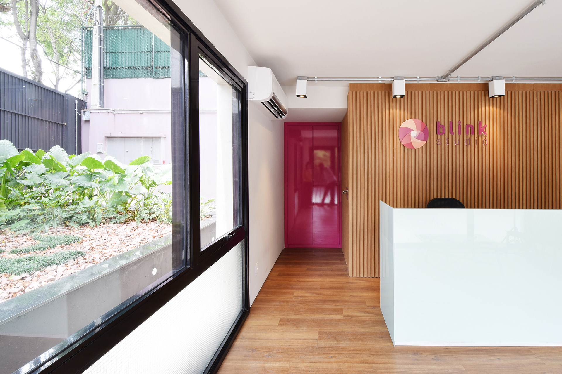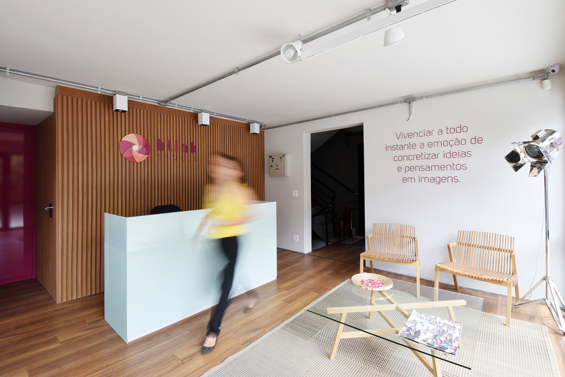 Dá-nos muita satisfação poder fazer um projeto completo. Conseguimos trabalhar com as sensações das pessoas de forma mais completa. No Blink a arquitetura de interiores tem um aspecto informal e o piso vinilico com estampa de madeira proporciona praticidade de manutenção e trás a sensação de acolhimento, ausente no exterior do edifício que trabalha com tonalidades de cinza e cores vibrantes. O importante em tudo isso é a harmonia em cada ambiente e entre os ambientes. No caso do Blink quanto mais íntimo o ambiente, escolhemos materiais mais ‘quentes’ e acolhedores.