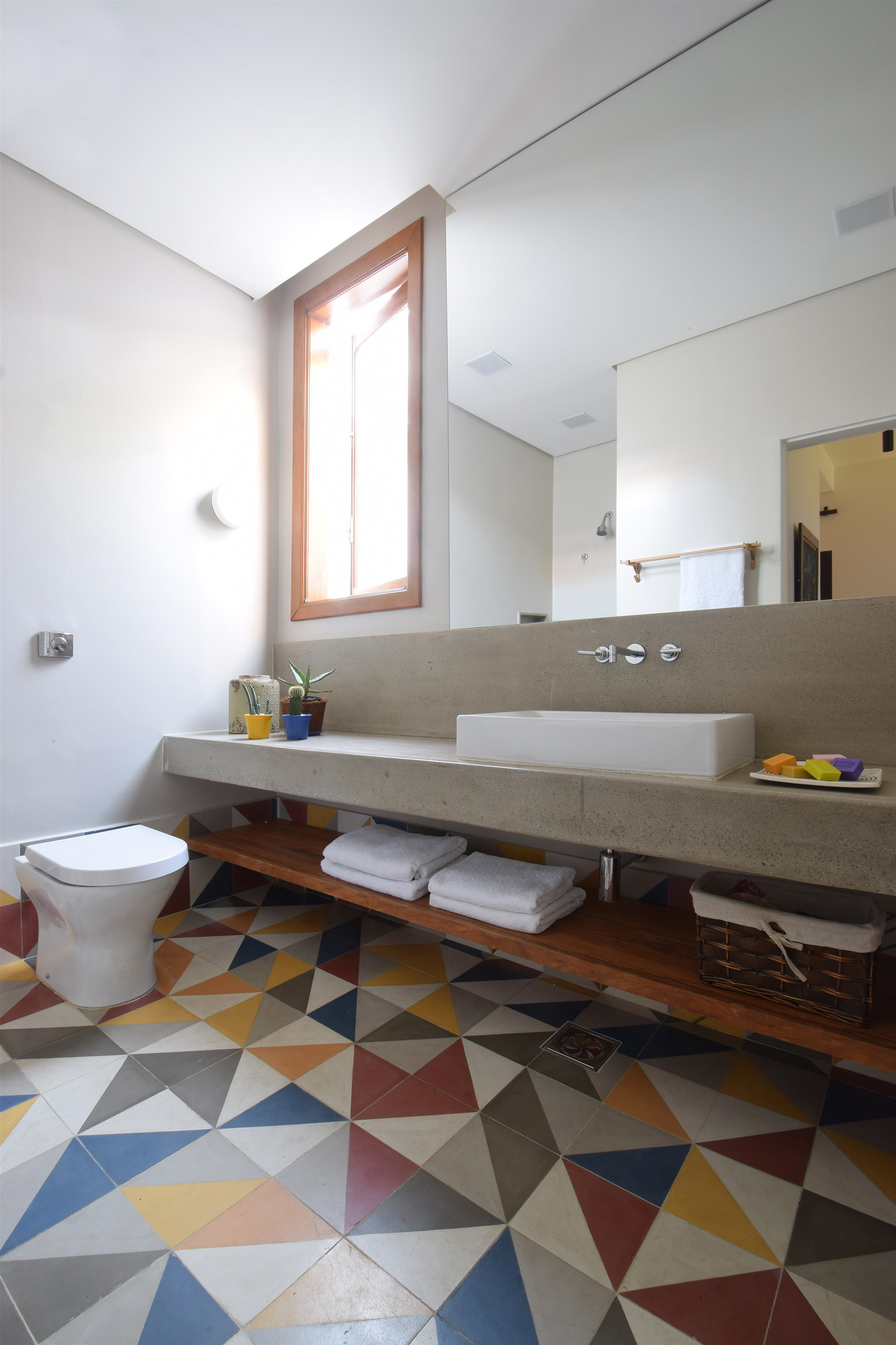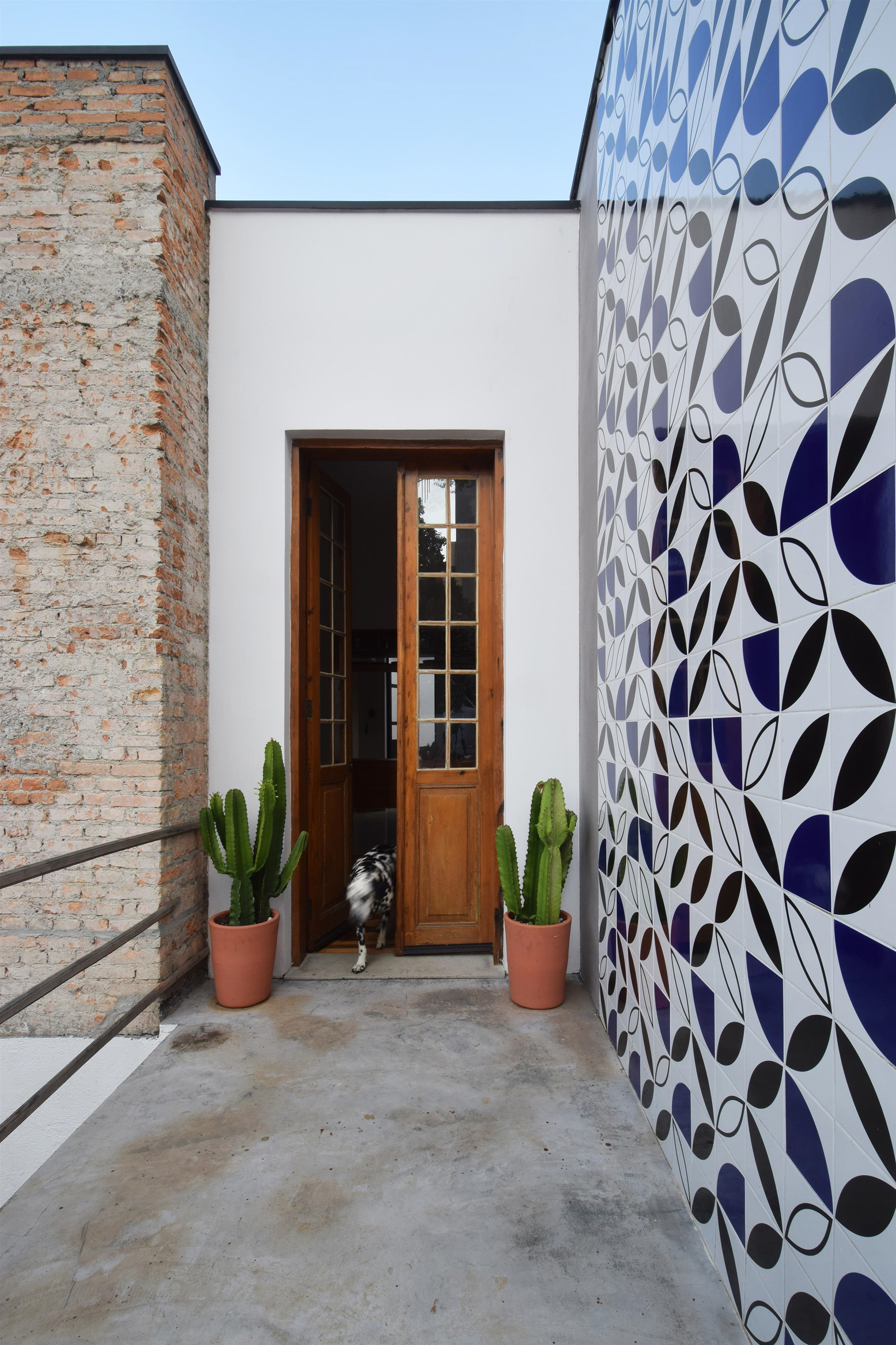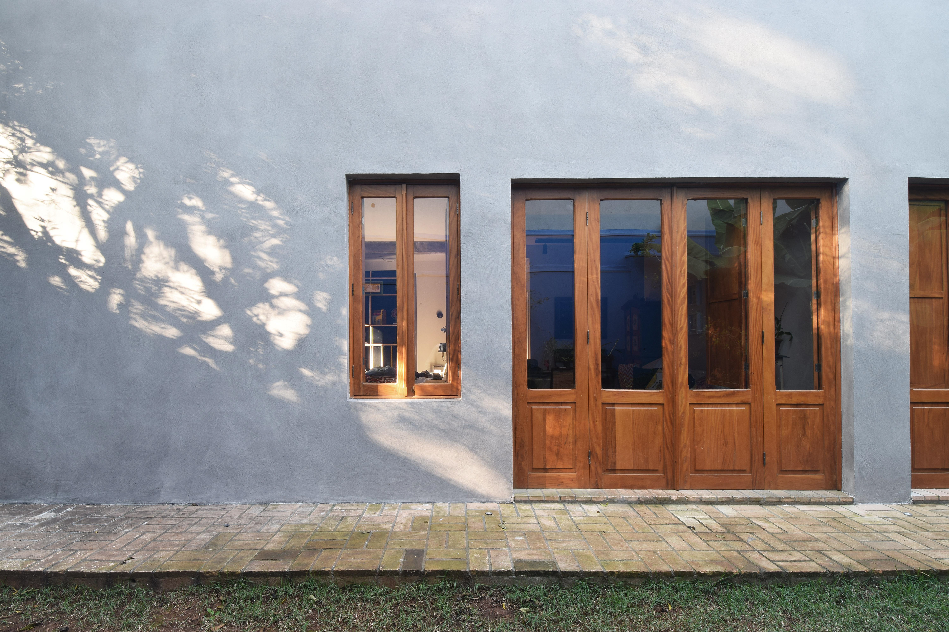 Agora não há mais barreiras e da sala é possível vislumbrar o verde e o profundo azul que reveste o muro. A quarta face foi aberta e o jardim ganhou sua devida importância junto com a ventilação cruzada e a amplitude visual.