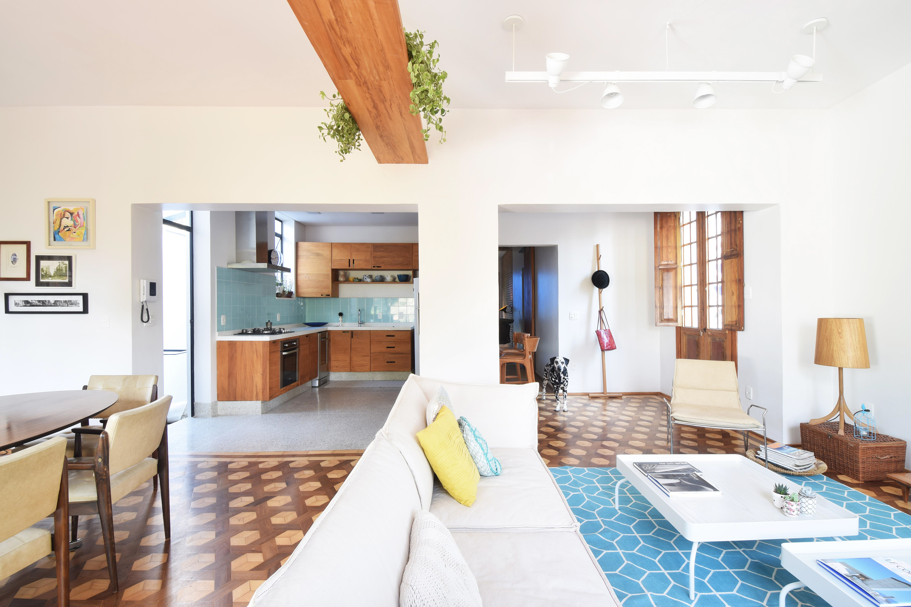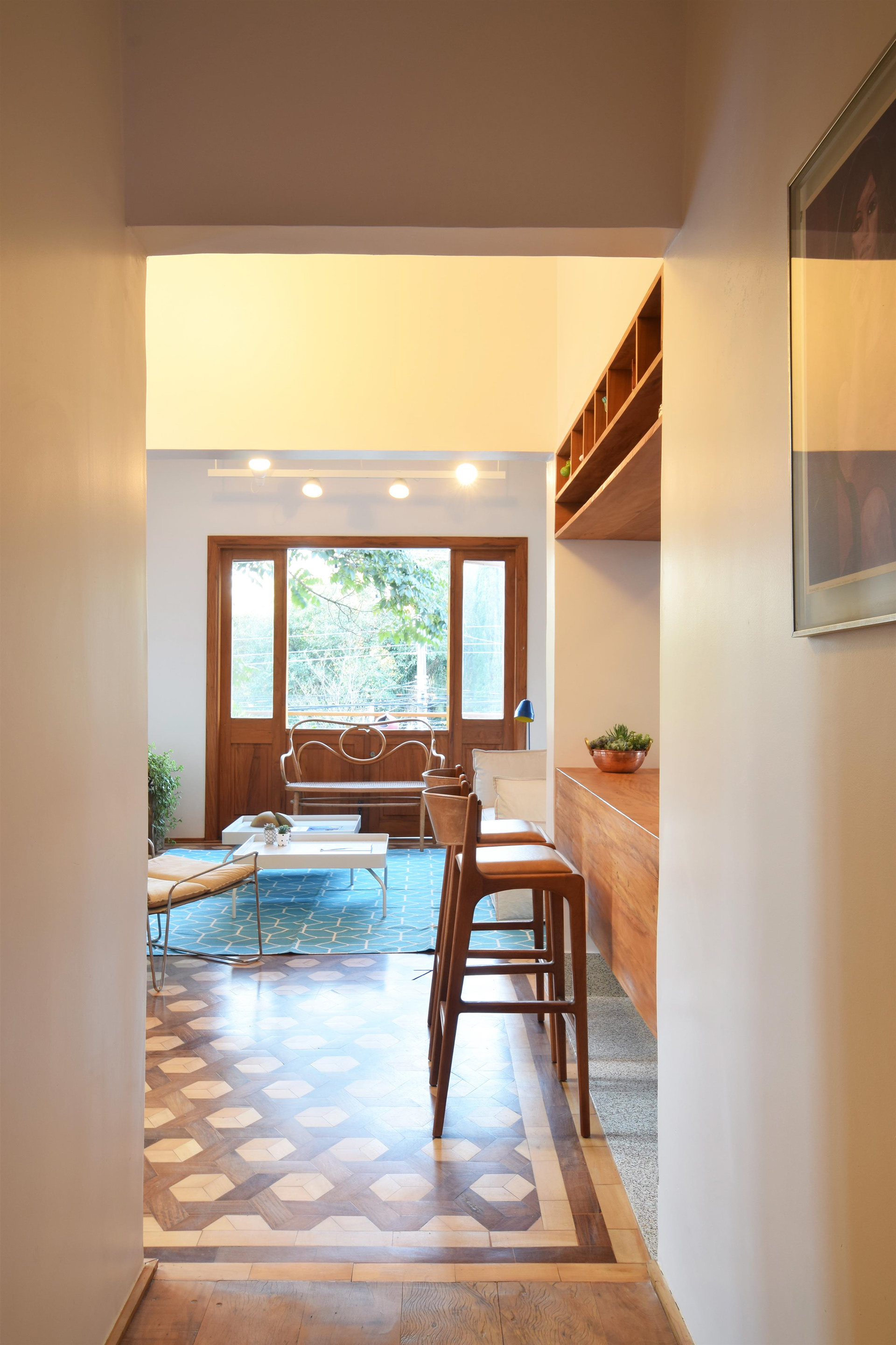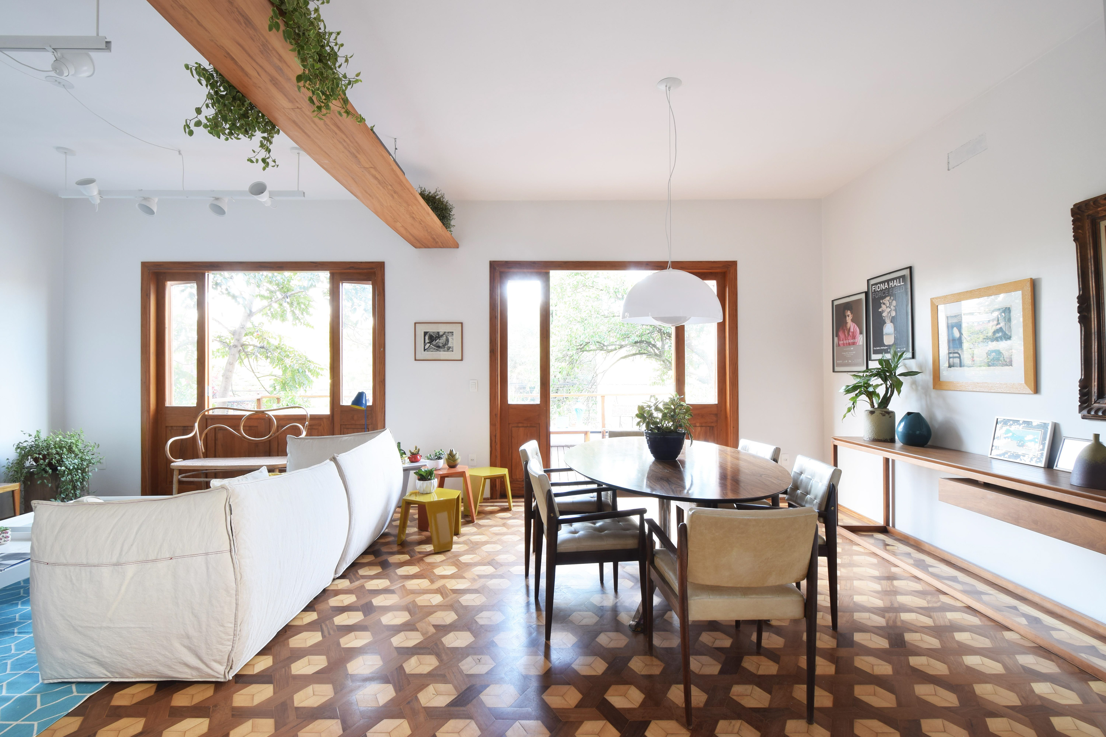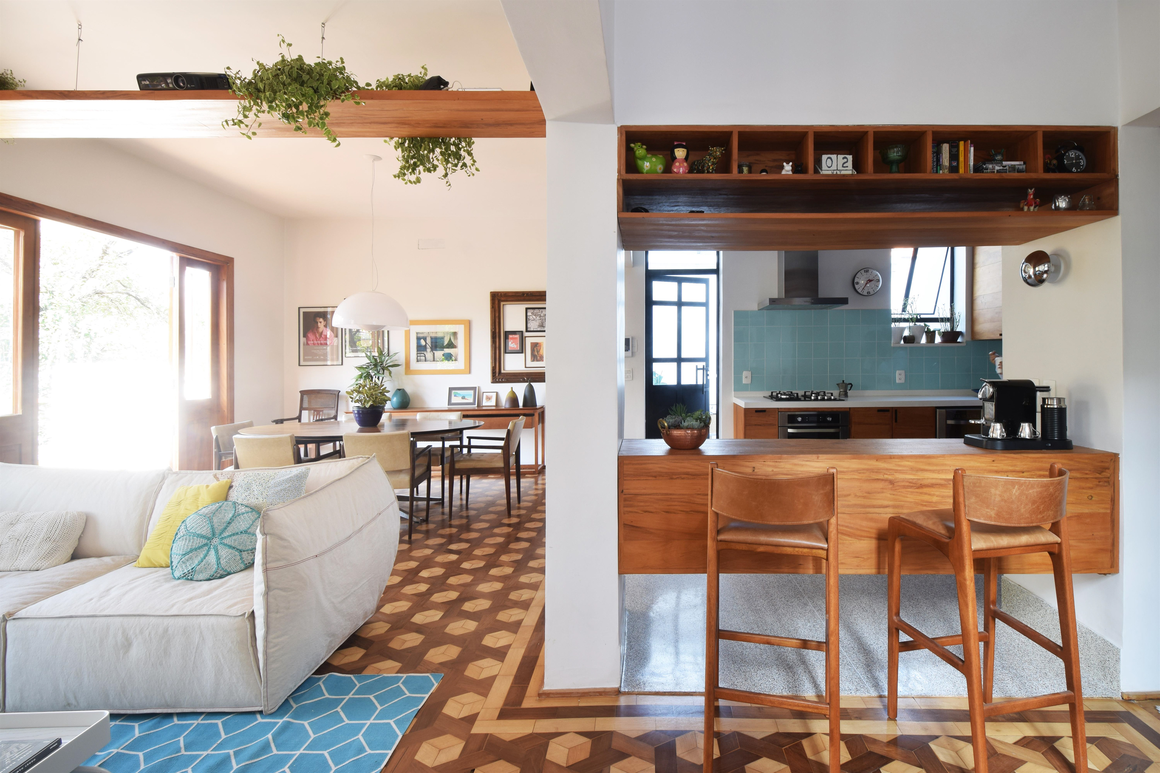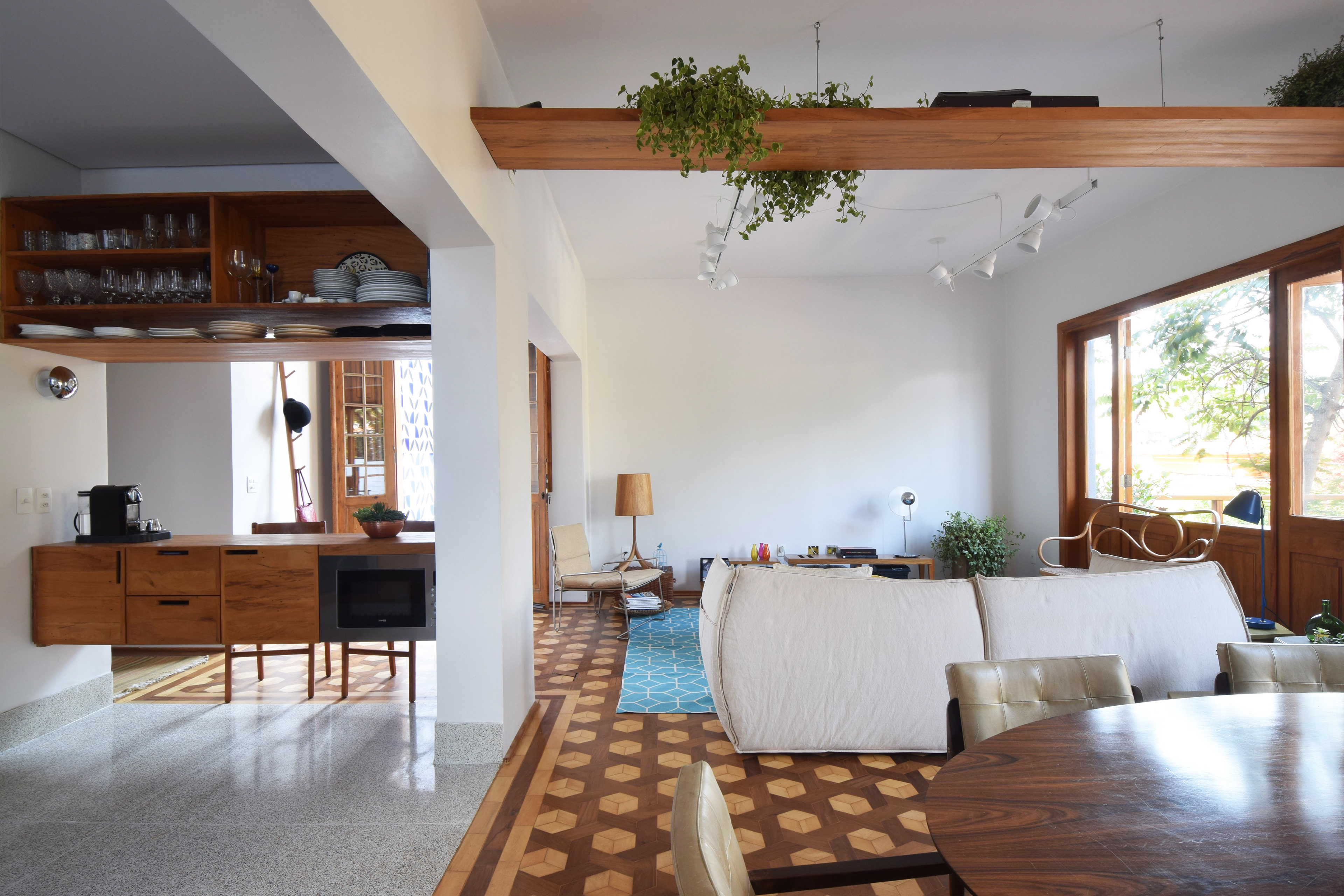 O casal costuma receber amigos em casa de maneira informal e aconchegante por isso havia uma necessidade de aumentar a área social que tinha uma pequena sala voltada para rua, longe do jardim com pouca incidência de luz natural.