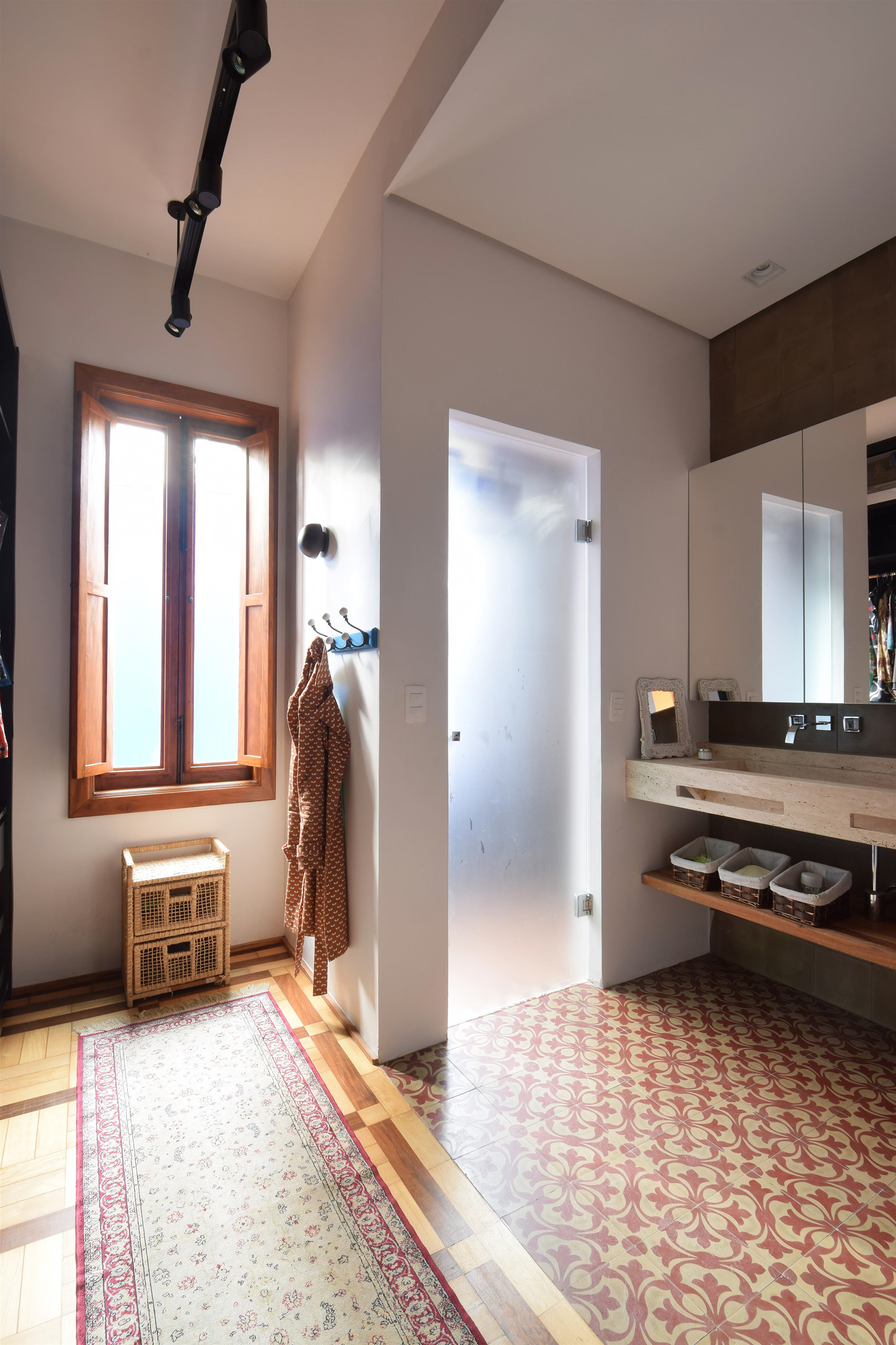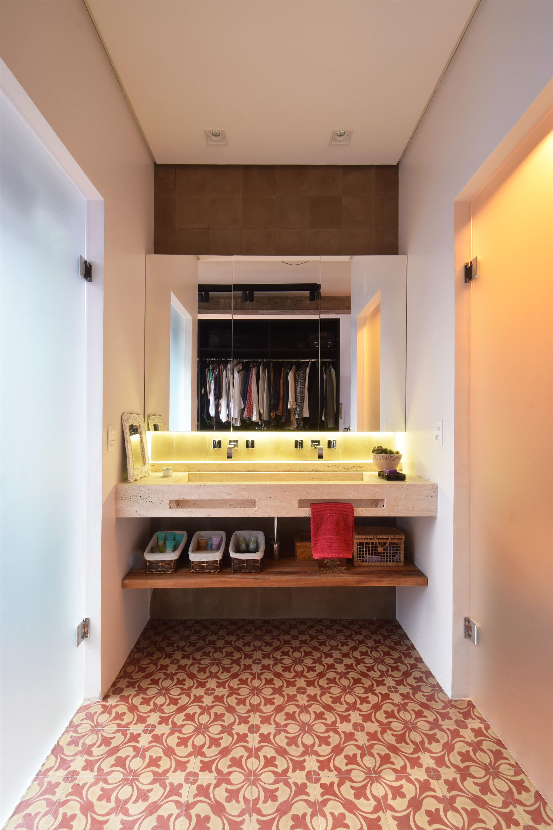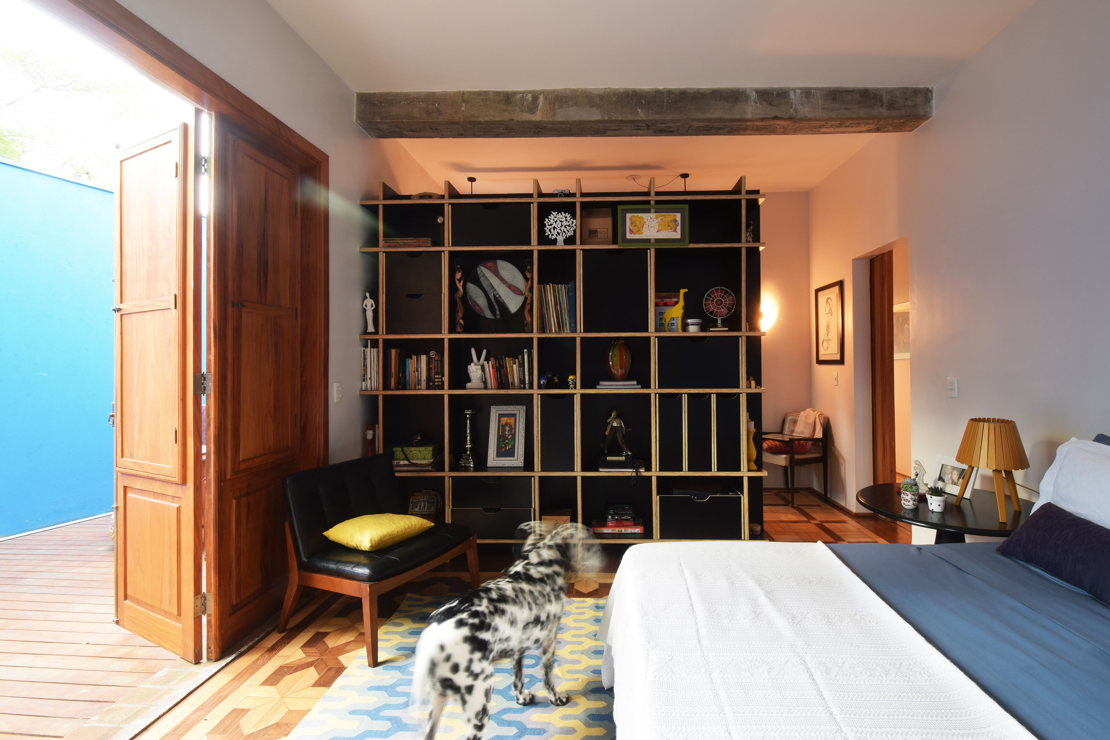 A maior interferência estrutural foi feita na área intima. Dois dormitórios foram unificados se transformando na suíte principal. Na extremidade oposta uma ampliação foi feita alinhando os blocos intimo e social. Com isso foi possível criar um novo dormitório e posicionar o escritório, aberto, mas reservado, no eixo da circulação intima fazendo a desejada ligação do jardim localizado nos fundos do lote com a área social.