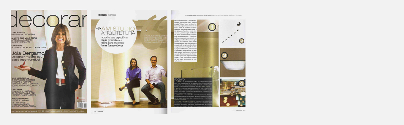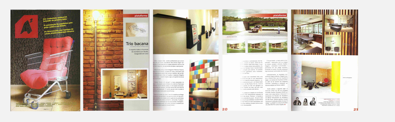 Mais fundo ainda, André Weigand e Mariana Teixeira, sócios do a:m Studio, fundado em 2007, concordam que um dogmatismo assim tão comum, sozinho, não se basta. Juntaram-se a mais um sujeito, o veterano Olegário Vasconcelos – e da formação surgiu um espírito funcional bem - humorado."