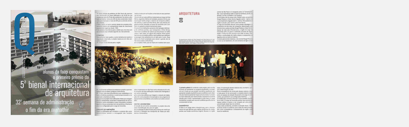 O curso de Arquitetura e Urbanismo da FAAP, participou do Concurso Internacional de Escolas com o projeto Largo da Concórdia, elaborado pelos alunos: Luis Eduardo Menezes, Maria Cristina Motta, Maria Elisa Friedmann, Marcela Pirozzi, André Weigand, Adriano Bogalhão.
