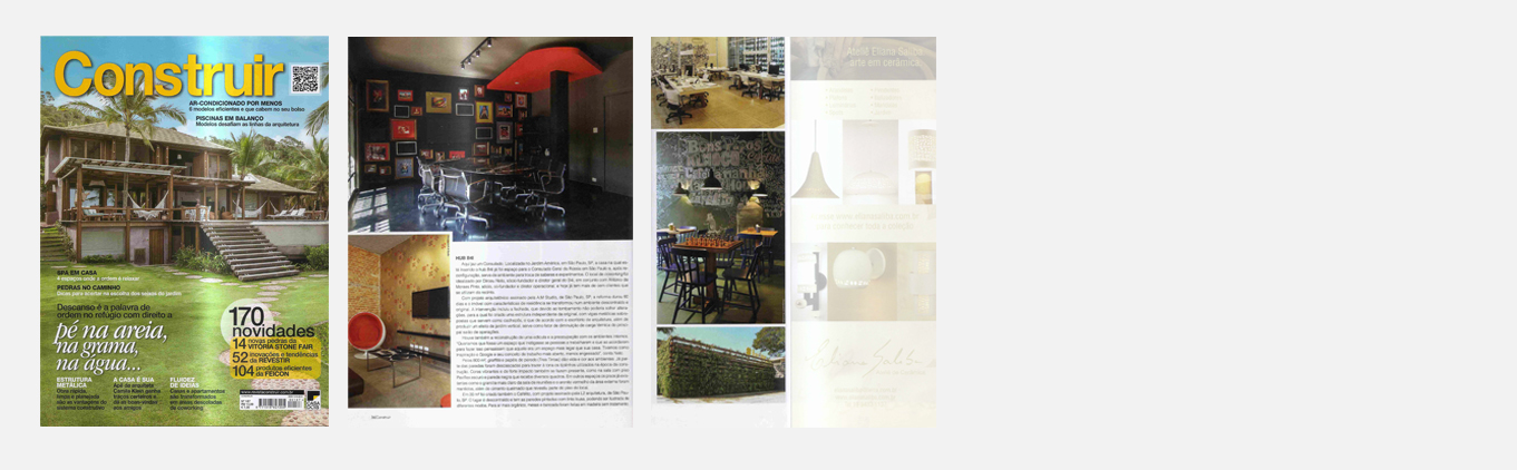 "(...) há trabalhos de fôlego no histórico do escritório, que aponta como um dos principais desafios um projeto para a agência de publicidade Brain4ideas com prazo curtíssimo, de 60 dias. A pesquisa recaiu em utilização de recursos de fácil montagem, marcenaria executada "em prazo recorde" e trabalhos de grafiteiros como opção de revestimento."