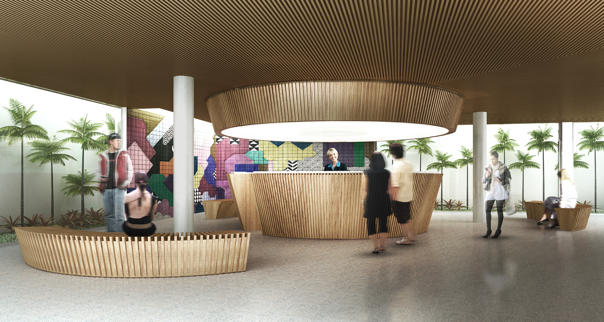 No espaço com pé-direito mais alto, dois laboratórios foram implantados, devido à densidade de tubulações e infraestrutura. “O acesso original foi mantido e outros dois foram criados. Um deles na rua oposta, para serviços e entregas, provido de docas e próximo a depósitos, lixeiras e câmaras frigoríficas. O outro acesso, principal para alunos e visitantes, define um novo eixo organizacional, locado entre os dois blocos e no centro do complexo”, destaca.