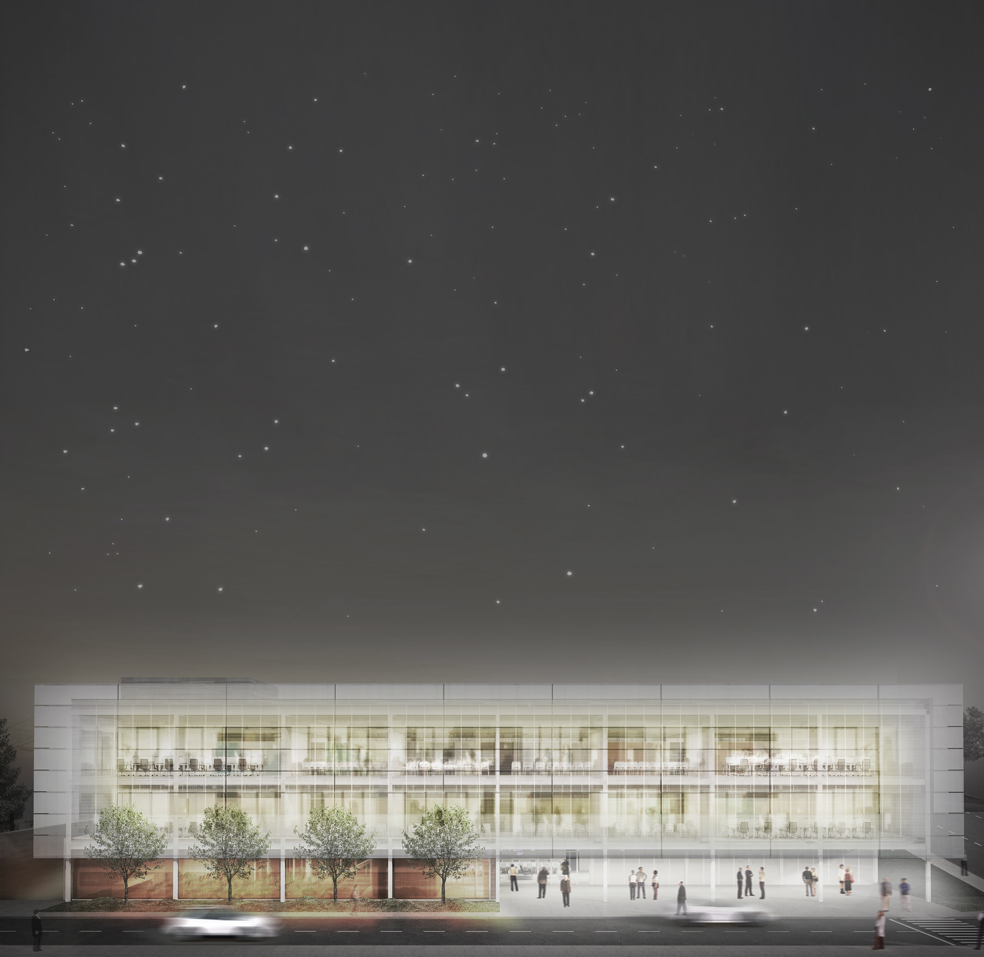 A decisão pelo gabarito reduzido, por conseguinte, nos direciona a um edifício compacto, invariavelmente econômico; ocupando boa parte do lote, ainda assim com recuos mais generosos do que os previstos em Legislação. Nosso empenho em fazer relacionar o térreo dessa nova unidade e ampliar sua interface com a cidade nos levou a uma estratégia no exercício do Programa Arquitetônico em favor do Partido.