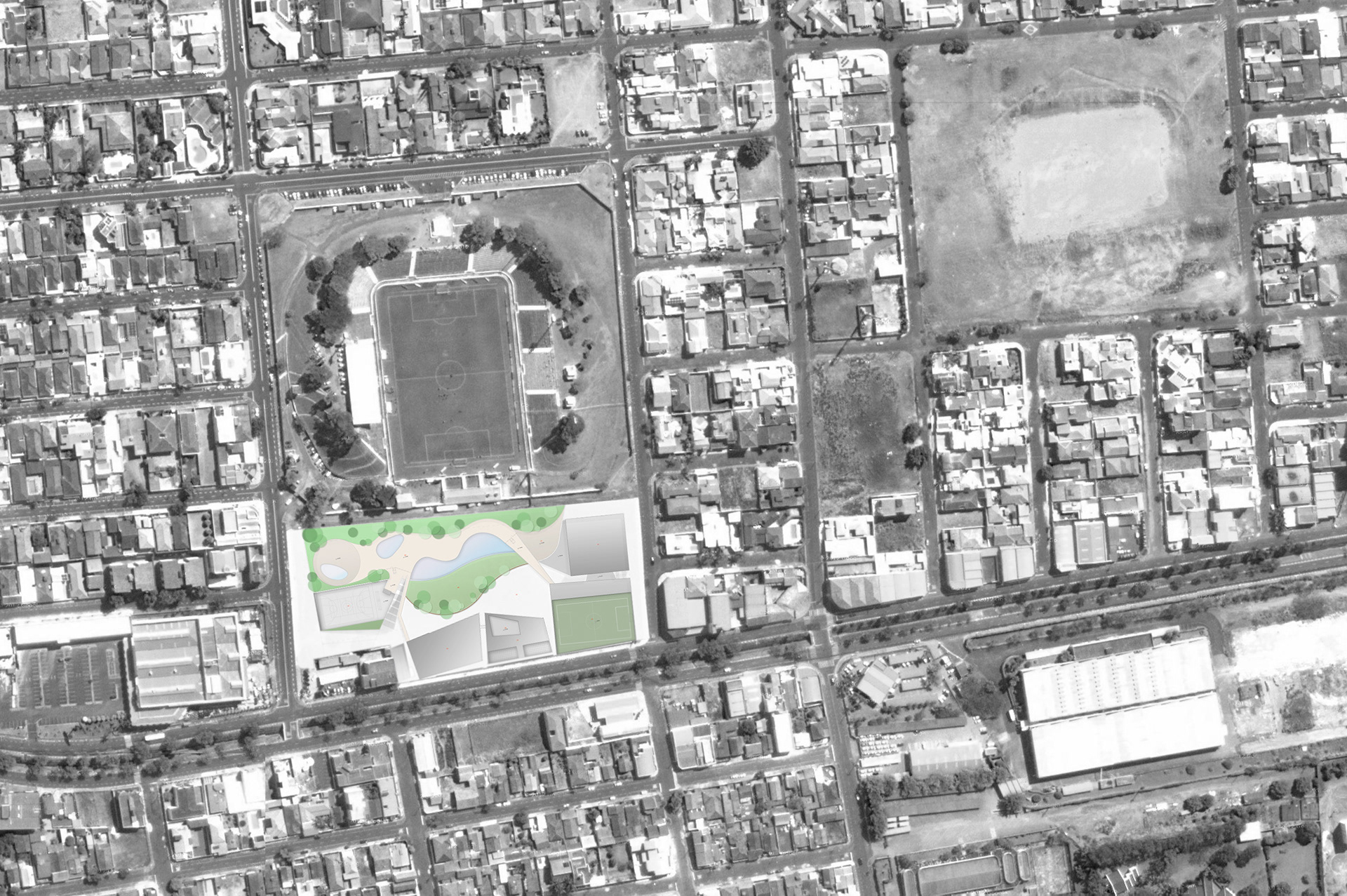 Um dos desafios de projetar uma unidade do SESC para Franca está na relação que o complexo terá com a cidade. Após análise do bairro onde será construído o empreendimento, percebemos a baixa verticalização, característica predominante da cidade, e a necessidade de estabelecermos um ponto de referencia com o entorno.